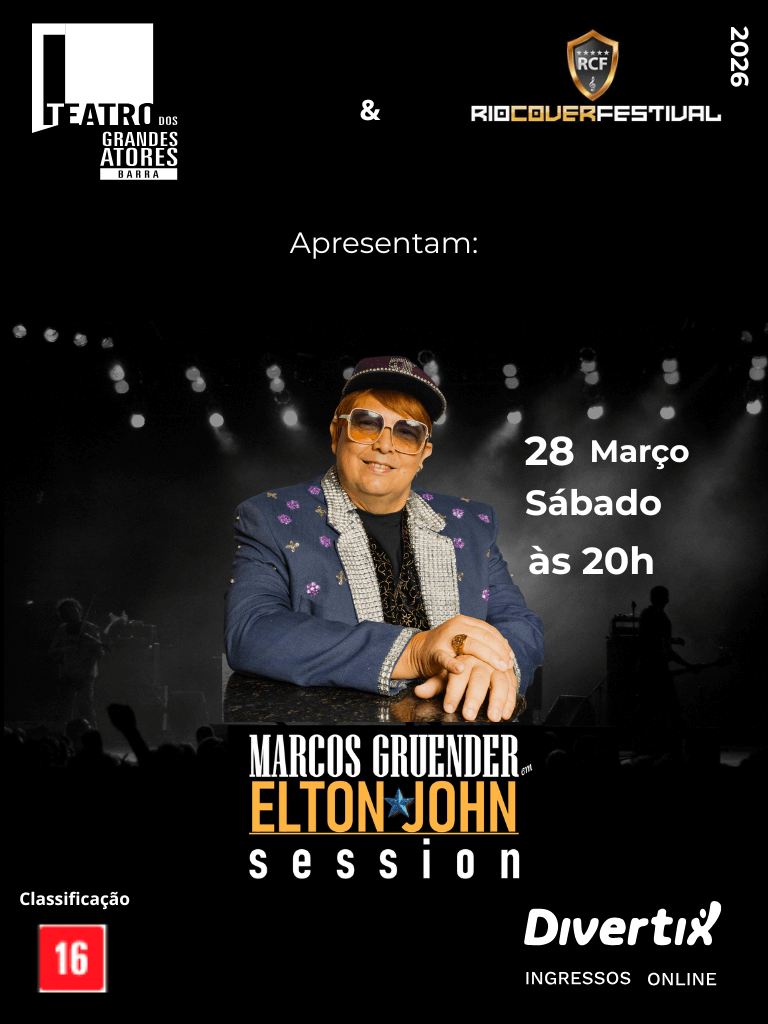 Tributo a Elton John - Interpretado por Marcos Gruender no projeto Projeto Rio Cover Festival - O Cantor e Pianista tem uma trajetória musical e artística de sucesso, marcada por receber inúmeros aplausos em todos os palcos onde se apresenta. É um show que propõe uma experiência envolvente e memorável para o público espectador, relembrando grandes hits de Sir Elton John, em um repertório cuidadosamente selecionado criando uma atmosfera nostálgica e interativa. A proposta valoriza a qualidade artística, a fidelidade sonora e a conexão emocional com o público.